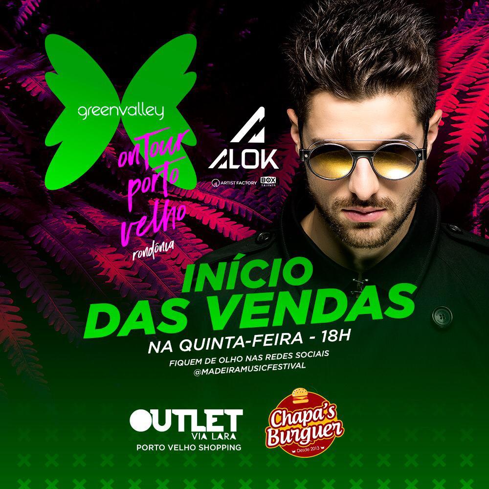 Dia 1° de outubro, véspera de feriado municipal, Porto Velho irá receber pela primeira vez a edição do Green Valley Tour, considerado mundialmente como o maior evento. Que vai trazer um dos Djs mais badalados da música eletrônica, o ‘Dj Alok’ e atrações locais, organizado pela Madeira Music Festival.