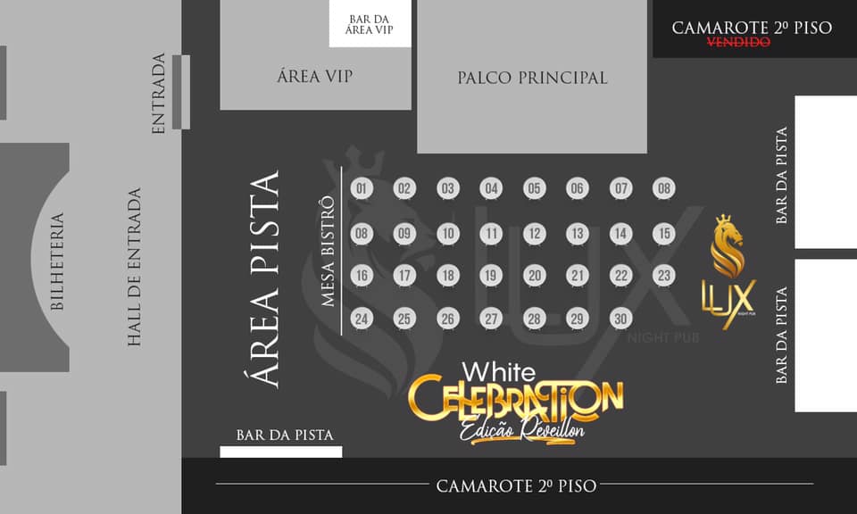 Participe da Festa White Celebration – Edição Réveillon na Lux com muito luxo, atrações a noite toda, decorações temáticas, 07 horas de open bar das 23:00 às 06:00 e no final aquele delicioso café da manhã. Chame a sua turma, comemore e entre 2020 da melhor maneira!