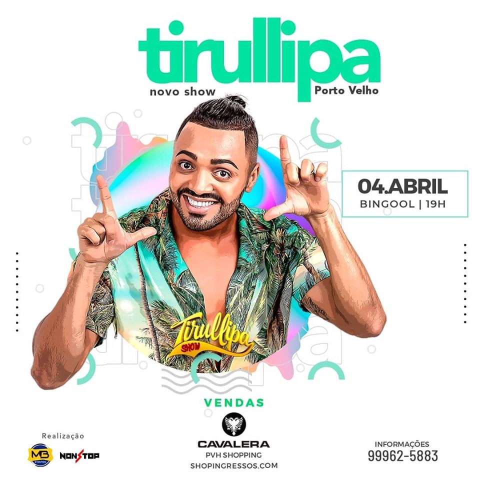 Alô galera! Tirullipa, humorista e rei das paródias está de volta em Porto Velho com mais um sucesso “Se você não riu, vai achar graça”. É dia 04 de abril, a partir das 19:00 no Bingool Eventos.